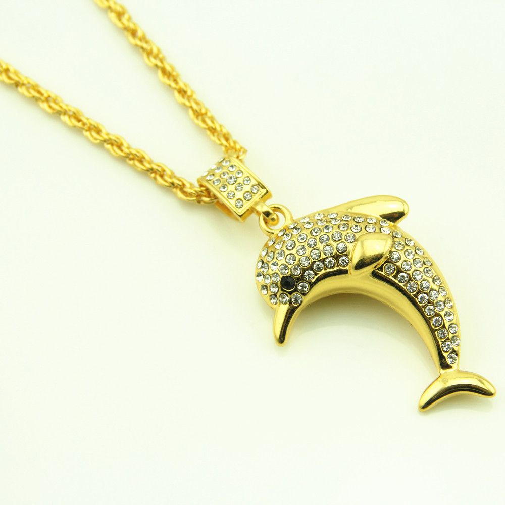 Wholesale Wholesale 18k Gold Plated Bling Micro Dolphin Necklaces